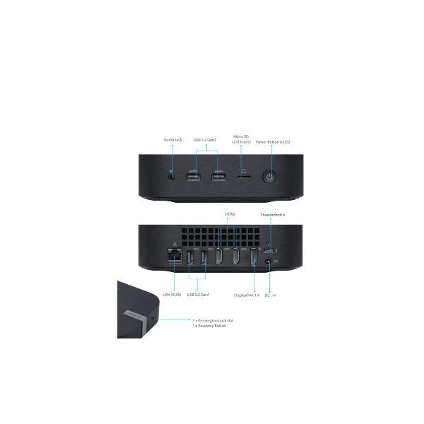 GENERALE Form Factor: Mini PC  |Wireless (standard): Wi-Fi 6E (802.11ax)  |Bluetooth: Sì  |Colore Primario: Nero  |Mouse: Non presente  |Raffreddamento a liquido: No  |Tastiera: Non Presente  |Altoparlanti: No
